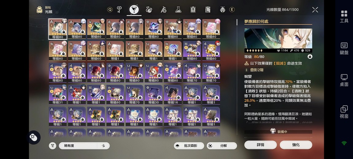 【男、70等、23金角、13金專】6+1 鏡流 風堇 昔漣 霞蝶 餘180抽附近