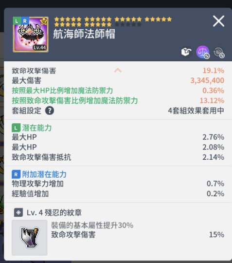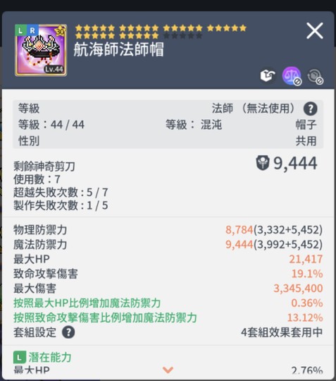 亞洲一 溫迪亞售30星🌟44等航海師法師帽子