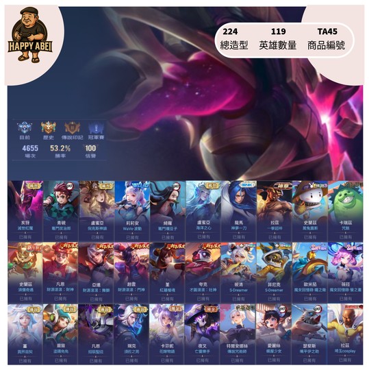 【Garena帳有綁定、青銅、無VIP、119英、224造】[分期/直購]快樂阿北遊戲館~主打亥犽滅世青硯炭治郎綺蘿禰豆子莉莉安女團倪克斯諭