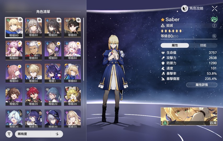 【女、67等、12金角、6金專】saber6+1 使用者未設定 多石可挖