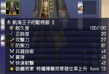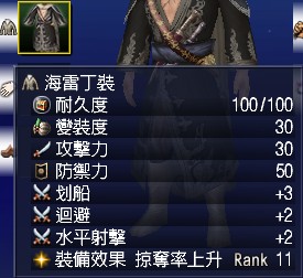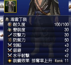 ~海雷丁裝(划船+3,迴避+2,水平+2,掠奪率上升R11)~