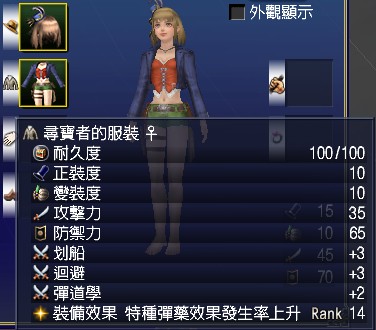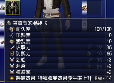 ~ 尋寶者的服裝(划船+3,迴避+3,彈道+2,特種彈藥r14)~ 36nt