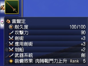 ~ 櫂木刀(划船+3,劍術+3,防禦+2,肉搏戰鬥力上升r5)~ 46nt