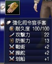 ~ 樂士的手套( 操帆+1,操舵+1,工藝生產+1,耐久100 )~ 26nt