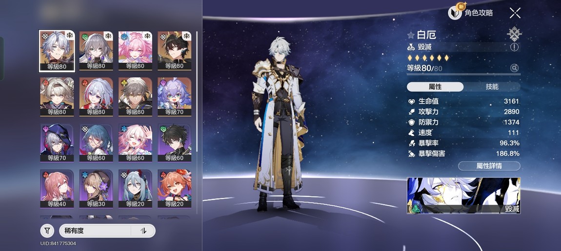 【男、62等、1金角、1金專】白厄6+1 昔漣 新增流螢