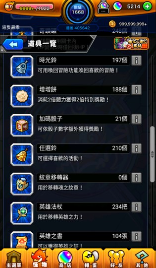 寶珠.極運.道具.徽章.魂力等數量持續增加當中