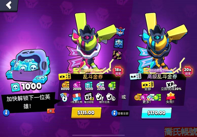 【OBHHOLB741042】| 【賬號】荒野亂鬥,折扣區(五折區)96英雄,93滿級,83極限充能。44個頭銜,專精等級很高。6個充能皮,22個傳奇皮,18個神話皮,214個史詩皮,107個超稀有皮,91個稀有皮,共458個皮膚。高階金券僅需38元,通行證93元,禮包均5折左右。