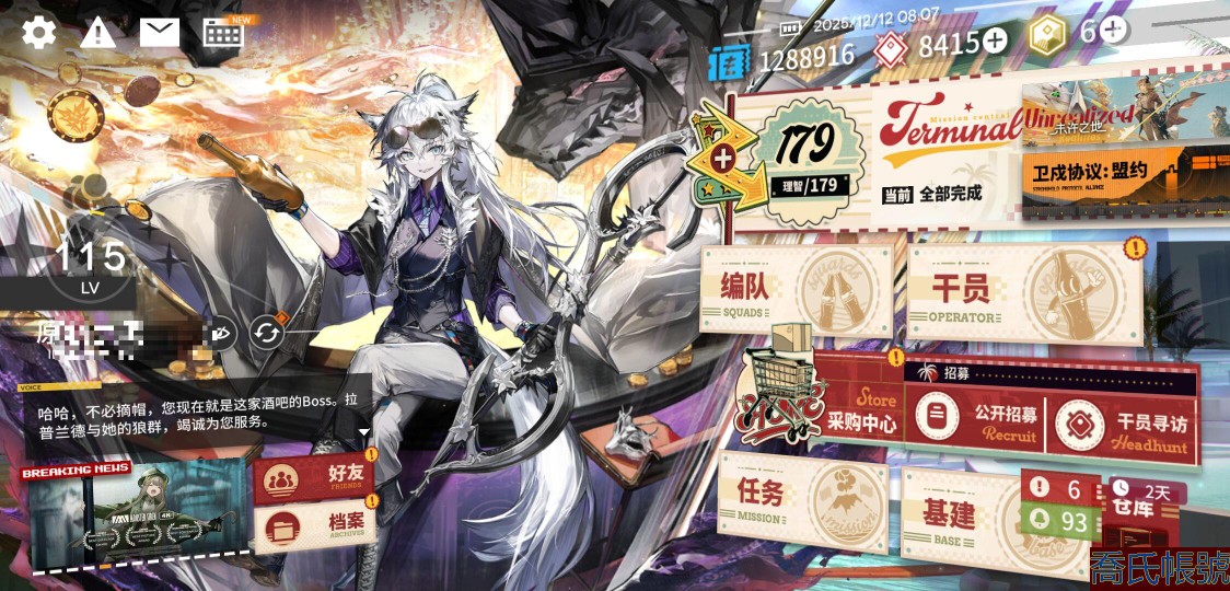 【11等】115級,91六星,65精二,5精一,合成玉數量:8415,源石數量:6,聯動