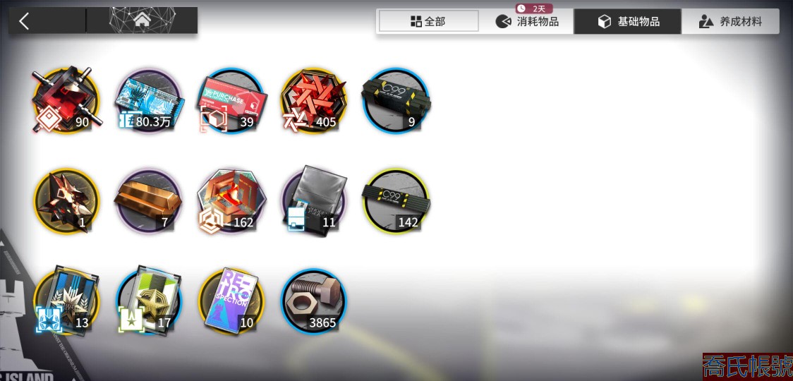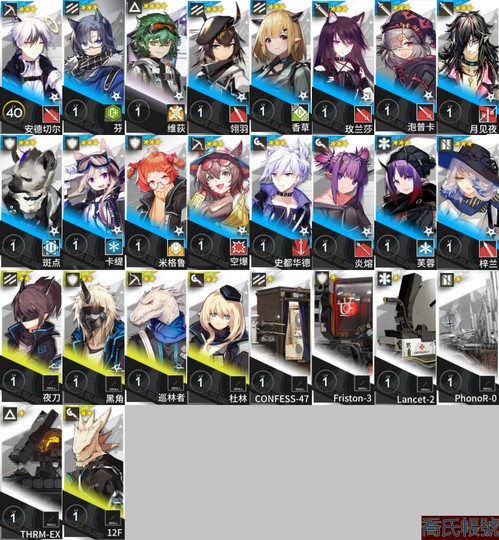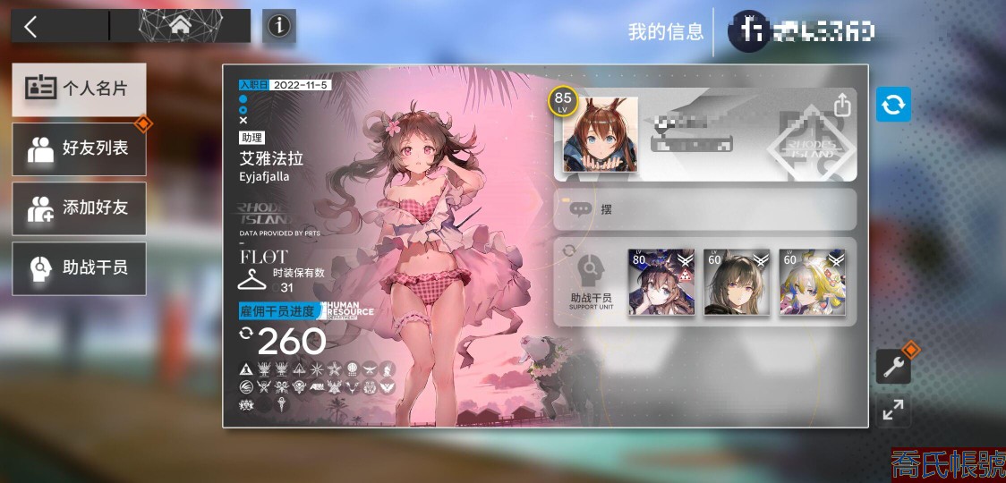【11等】85級,53六星,31精二,4精一,合成玉數量:90,源石數量:0,聯動幹員數