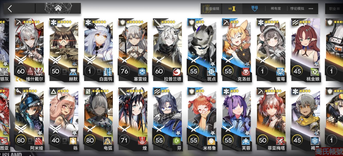 【11等】14六星,限定六星:維什戴爾,凜御銀灰,濁心斯卡蒂;非限定六星:塞雷婭,煌,泥
