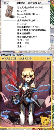 闇●咒術士 凱特莉娜卡片 戰死王卡(披肩位置) 輕鬆all state+20?