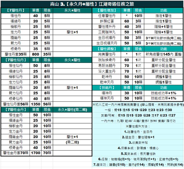 19五嶽嵩山【百分百】各式丹藥|自修|屬性|攻防|遊俠|X2