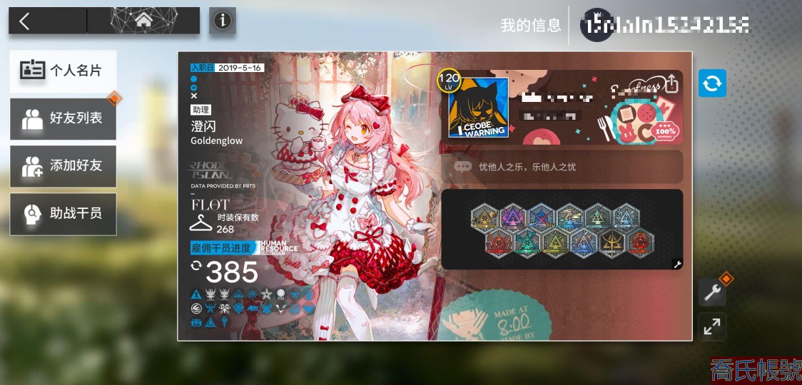 【OBMFICP462342】120級,118六星,111精二,2精一,合成玉數量:3514,源石數量:15,聯動幹員數量:18,時裝數量:268,精二六星:艾雅法拉,塑心,斯卡蒂,老鯉,異客,歸溟幽靈鯊,麒麟R夜刀,年,黑,遠牙,銀灰,耀騎士臨光,森蚺,靈知,斥罪,推進之王,白鐵,黑鍵,帕拉斯,假日威龍陳,溫蒂,灰燼,安潔莉娜,陳,止頌,W,山,早露,空弦,瑕光,忍冬,新約能天使,多蘿西,號角,刻俄柏,伊芙利特,嵯峨,餘,伺夜,凱爾希,Mon3tr,菲亞梅塔,傀影,阿,麥哲倫,歌蕾蒂婭,維娜·維多利亞,迷迭香,繆爾賽思,能天使,閃靈,緘默德克薩斯,焰尾,莫斯提馬,風笛,淬羽赫默,百鍊嘉維爾,阿斯卡綸,濁心斯卡蒂,夜鶯,琴柳,艾拉,艾麗妮,水月,星熊,卡涅利安,夕,琳琅詩懷雅,流明,赫拉格,魔王,重嶽,薇薇安娜,澄閃,左樂,赫德雷,滌火傑西卡,黍,伊內絲,聖聆初雪,娜仁圖亞,林,仇白,霍爾海雅,泥岩,鈴蘭,瑪恩納,提豐,荒蕪拉普蘭德,烏爾比安,萊伊,妮芙,電弧,酒神,佩佩,鴻雪,棘刺,塞雷婭,瑪露西爾,聖約送葬人,鐧,史爾特爾,真言,令,維什戴爾,蕾繆安,焰影葦草,邏各斯,純燼艾雅法拉,豐川祥子,煌;精一六星:引星棘刺,弒君者;六星幹員:艾雅法拉,塑心,斯卡蒂,老鯉,異客,歸溟幽靈鯊,麒麟R夜刀,年,黑,遠牙,銀灰,耀騎士臨光,森蚺,靈知,斥罪,推進之王,白鐵,黑鍵,帕拉斯,假日威龍陳,溫蒂,灰燼,安潔莉娜,陳,止頌,W,山,早露,空弦,瑕光,忍冬,新約能天使,多蘿西,號角,刻俄柏,伊芙利特,嵯峨,餘,伺夜,凱爾希,Mon3tr,菲亞梅塔,傀影,阿,麥哲倫,歌蕾蒂婭,維娜·維多利亞,迷迭香,繆爾賽思,能天使,閃靈,緘默德克薩斯,焰尾,莫斯提馬,風笛,淬羽赫默,百鍊嘉維爾,阿斯卡綸,濁心斯卡蒂,夜鶯,琴柳,艾拉,艾麗妮,水月,星熊,卡涅利安,夕,琳琅詩懷雅,流明,赫拉格,魔王,重嶽,薇薇安娜,澄閃,左樂,赫德雷,滌火傑西卡,黍,伊內絲,聖聆初雪,娜仁圖亞,林,仇白,霍爾海雅,泥岩,鈴蘭,瑪恩納,提豐,荒蕪拉普蘭德,烏爾比安,萊伊,妮芙,電弧,酒神,佩佩,鴻雪,棘刺,塞雷婭,瑪露西爾,聖約送葬人,鐧,史爾特爾,真言,令,維什戴爾,蕾繆安,焰影葦草,邏各斯,純燼艾雅法拉,豐川祥子,煌,引星棘刺,弒君者,死芒,溯光星源,隱德來希,信仰攪拌機,燭煌;聯動幹員:灰燼,艾拉,瑪露西爾,豐川祥子,萊歐斯,導火索,戰車,齊爾查克,醫生,閃擊,森西,九色鹿,羅小黑,泰拉大陸調查團,霜華,三角初華,雙月,若葉睦;時裝:蝶舞華章·伊內絲,星月漂流記·克洛絲,超新星·維什戴爾,漫步於黃金之夢·繆爾賽思,輝煌的靜謐·邏各斯,春日宴·黍,霹靂導演·年,全能演員·重嶽,暗月的影子·鐧,無我唯識·塑心,眾志歸一·聖約送葬人,幽蘭秘辛·緘默德克薩斯,遠行前的野餐·純燼艾雅法拉,不融冰·銀灰,新枝·繆爾賽思,燃燒天穹下·伊內絲,紅女爵·濁心斯卡蒂,何處棲·重嶽,列瑤臺·林,破翼者·緘默德克薩斯,博物·焰影葦草,遠路·瑪恩納,崖高夢遠·令,悠然假日HD26·百鍊嘉維爾,夏卉FA394·澄閃,殘餘·凱爾希,生而為一·歸溟幽靈鯊,萬重山·假日威龍陳,濯纓·令,夏日餮宴·水月,字句中的雪原·鴻雪,手到牌來·老鯉,今昔須臾之夢·異客,繽紛奇境CW03·史爾特爾,復現榮光·耀騎士臨光,擁抱新生·迷迭香,焦點·傀影,昇華·濁心斯卡蒂,染塵煙·夕,樂逍遙·年,恍惚·W,一人車隊·賈維,綿絨小魔女·艾雅法拉,火種·火神,糖果暴擊·奧達,玩伴·紅雲,家傳秘方·暴行,甜美配方·妮芙,最初的頌歌·PhonoR-0,拭刀·刻刀,封面傭兵·石英,礫瓦·泥岩,寄自奧格尼斯科·薇薇安娜,繁霜滿階·纏丸,夢幻高空·萊伊,玫瑰騎手·維荻,相位面容·錫人,易爆藍焰·煌,遺蹟遊學者·驚蟄,雙料四分衛·THRM-EX,新手光環·寒芒克洛絲,隨意而行·蘇蘇洛,悠然假日HD61·蜜蠟,泰拉冒險·瑪露西爾,花房茶話會·澄閃,雲上直播間·U-Official,地底三百米·暴行,我即潮汐·歌蕾蒂婭,記敘·斥罪,從容時刻·翎羽,步芳蘭·小滿,密室·艾拉,鏡廊·雙月,禮遇·仇白,伴青蓮·截雲,賀新禧·清流,悠然假日HD71·寒檀,遠行的季節·松果,鋒潮·棘刺,主修領域·地靈,偶爾醉陶·斥罪,晚間咖啡店·安賽爾,星櫞林·流星,及山海·海沫,單刀·炎客,皇家近衛·風笛,悠然假日HDm74·至簡,北地引路人·提豐,晴日·卡緹,觸及星辰·阿米婭,命運主宰·多蘿西,悠然假日HD49·錫蘭,至聖誓言·菲亞梅塔,棠雲巧夢·子月,霜林醉·仇白,幽邃隱修·絮雨,夏卉FA062·桃金娘,沙灘護衛GT003·白鐵,悠然假日HDm57·褐果,悠然假日HD29·安比爾,競技之夢改裝·正義騎士號,下一頓午茶·斯卡蒂,彼有·嵯峨,奇工妙想·星極,山川的釀造·帕拉斯,化花·號角,衣縷往昔·梓蘭,捉風·遠牙,書信零落·海蒂,枝頭馥·夜半,午夜郵差·能天使,邀約·和絃,雪霽·鈴蘭,月宵·薄綠,別枝·稀音,火樹靈·布丁,躍上街頭·泰拉大陸調查團,面紗之下·獅蠍,繪聲繪影·深海色,燦海浮夢·流明,照冰輪·桑葚,遙鄉之徑·夏櫟,喜夜侍者·澄閃,風雪邀請·史都華德,組間休息·布洛卡,幻影輕悄·風丸,春之頌·鈴蘭,偽裝·宴,夏卉FA374·羅比菈塔,無痕行者·安德切爾,返航·歌蕾蒂婭,夏卉FA210·羽毛筆,心性·赤冬,擁抱新生·迷迭香曾經,燦陽朝露SDm11·極境,荒野之後·蜜莓,燦陽朝露SD08·卡涅利安,小健將·焰尾,悠然假日HDm04·炎客,光銃除錯員·奧斯塔,幽苔·暴雨,夏卉FA641·夜半,超級斷罪朋友·斷罪者,幽谷奏鳴·石棉,開牌制勝·龍舌蘭,識芳·琴柳,破冰·霜葉,植藥·桑葚,未完成的禮物·豆苗,先驅·靈知,海岸救援改裝·Lancet-2,黑曜石·泥岩,無拘無束·刻俄柏,妙手玄心·阿,詩人的假日·流星,冷山月·烏