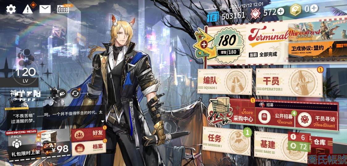 【11等】120級,96六星,88精二,4精一,合成玉數量:572,源石數量:0,聯動幹