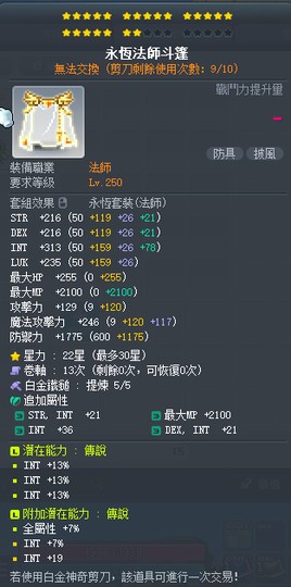【永恆法師斗篷】雙傳22星39%智永恆法師斗篷 附加77+19智 白5全b~