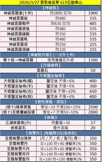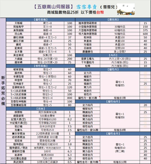 【雪雪專賣】S19五嶽嵩山 商城25折 悟裝 血丹 五甲 攻防丹 自修 0328