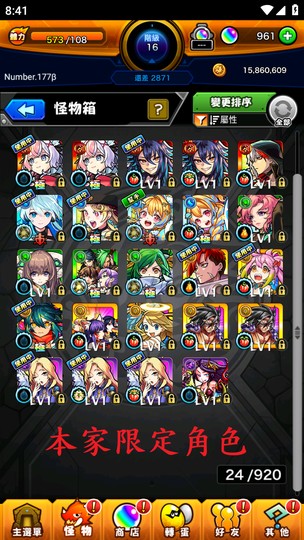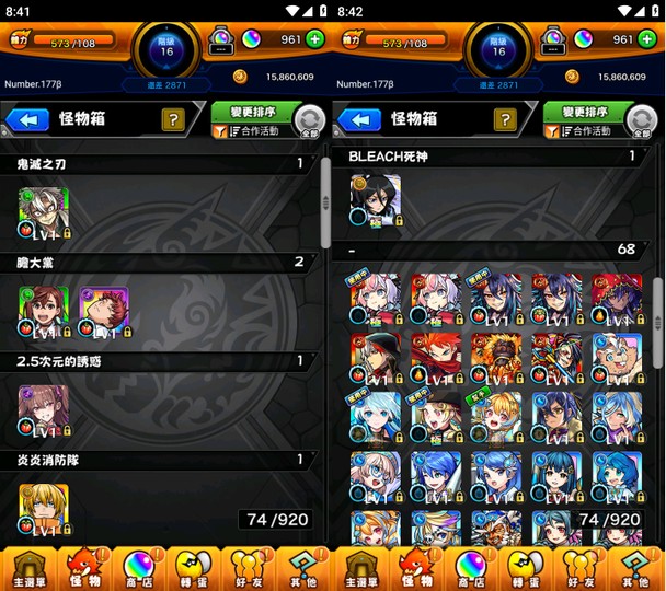 轉蛋角色除五、六星及合作四星,其餘互疊不占空間。