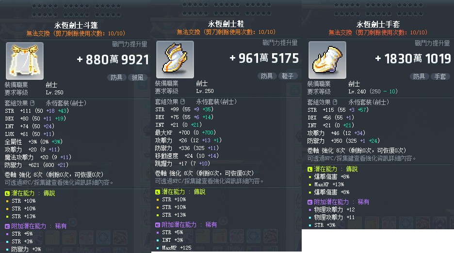 【小倢】33%力永恆劍士披+鞋子+雙爆13%HP永恆手套/%力永恆裝/劍士/%力裝/永恆