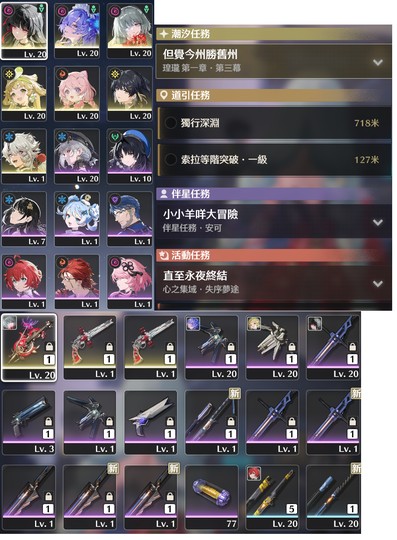 聯覺:20等 索拉未突破 解每日+體力 累積經驗 可突破