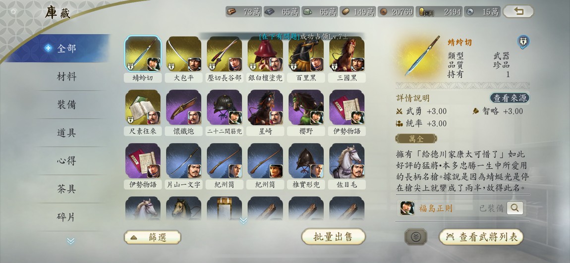 【999等】7服 織田松永 主力已50 19000威信 可刀