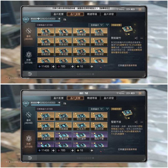 核芯:12連鎖反應 10疾影火刃 10酸焰激流 9極寒冰爆 8脈衝閃電 4熾熱槍膛 4侵蝕效應 3球狀閃電 3冰淩龍息 3絕對零度