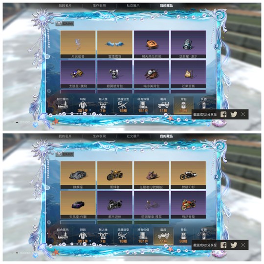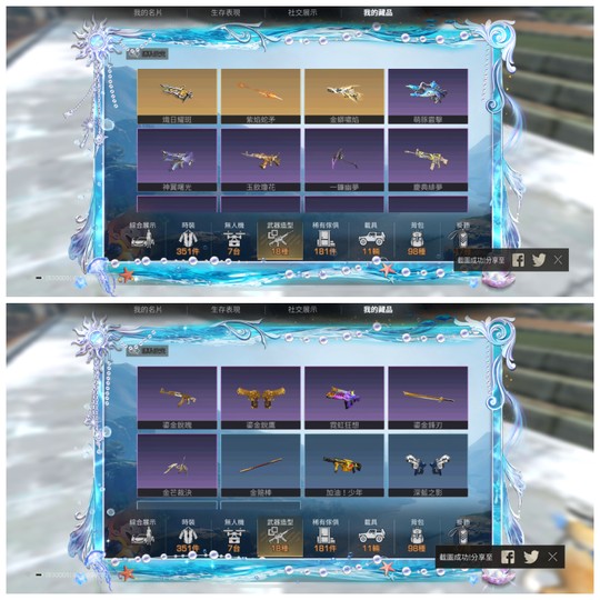 時裝皮膚載具:三套典藏 加 最新典藏時裝 多把武器皮膚