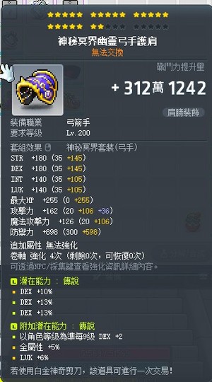 【36%敏神秘弓箭手肩膀、36%敏神秘弓箭手帽】22星.雙傳