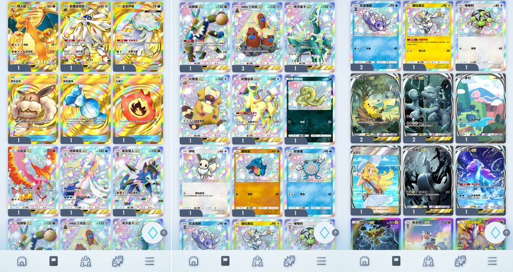 ✦ 彩鑽:火焰鳥EX、西獅海壬EX、鬃岩狼人EX、投擲猴、三地鼠EX*3、帝牙盧卡EX、大尾狸EX、阿爾宙斯EX、阿伯蛇、伊布、圓陸鯊、蚊香君、花樣海獅、捷拉奧拉、嘟嘟利