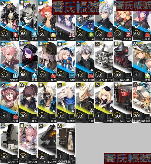 【11等】88級,92六星,59精二,3精一,合成玉數量:40,源石數量:0,聯動幹員數