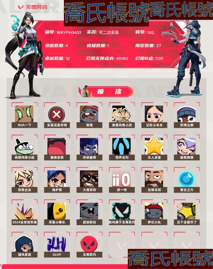 【OBWAYPH343342】Lv152|未定級, 刀皮數量12,槍皮數量88(絕版4限定27終極1卓越12);皮膚資產價值69160,已用R點1135;【刀皮】:近戰武器-2024全球冠軍賽戰刀,近戰武器-顯示卡3.0爪刀,近戰武器-鬼丸國綱,近戰武器-奇點2.0蝴蝶刀,近戰武器-超限快閃記憶體匕首,近戰武器-夜刃詭鐮,近戰武器-影刃,近戰武器-黑波之刃,近戰武器-荒土機兵熱能刀,近戰武器-詭秘蛇影軍刀,近戰武器-神聖領域戰刀,近戰武器-未來開拓者; 【槍皮】:標配-VCT25xLEV,狂徒-雙城之戰,幻影-2024全球冠軍賽,鬼魅-奇點2.0,正義-塑水宗,正義-西部未來,狂徒-奇點2.0,狂徒-混沌序曲,狂徒-創紀元,狂徒-虛空遺器,幻影-西部未來,幻影-電音光譜,飛將-西部未來,莽俠-顯示卡3.0,奧丁-西部未來,判官-上古龍炎,正義-離子武器,正義-掠影,狂怒-般若假面2.0,狂徒-掠影,狂徒-蓋亞的復仇,狂徒-般若假面2.0,幻影-異鱗魔蛇,戍衛-掠影,獠犬-般若假面2.0,冥駒-離子武器,冥駒-掠影,戰神-般若假面2.0,鬼魅-詭秘蛇影,判官-詭秘蛇影,狂徒-詭秘蛇影,莽俠-詭秘蛇影,狂徒-荒土機兵,狂徒-超能偶像,幻影-神聖領域,幻影-超限快閃記憶體,戍衛-超能偶像,獠犬-神聖領域,冥駒-荒土機兵,莽俠-超限快閃記憶體,正義-日耀風暴,正義-超限快閃記憶體,標配-阿特拉斯指揮部,標配-荒土機兵,狂怒-神聖領域,駭靈-荒土機兵,蜂刺-超限快閃記憶體,判官-超能偶像,戰神-神聖領域,幻影-末日之翼,幻影-奈米打擊,幻影-聚合之力,戍衛-折光稜晶,戍衛-月球哨兵,戍衛-逆衝蠻牛,戍衛-浮光躍金,獠犬-逆衝蠻牛,獠犬-模擬赫茲,獠犬-採蜜小蜂隊,冥駒-星雲暗湧,冥駒-模擬赫茲,莽俠-月球哨兵,飛將-末日之翼,飛將-聚合之力,正義-月球哨兵,正義-奈米打擊,鬼魅-星雲暗湧,鬼魅-模擬赫茲,鬼魅-採蜜小蜂隊,標配-折光稜晶,標配-浮光躍金,短炮-末日之翼,狂怒-逆衝蠻牛,狂怒-聚合之力,駭靈-星雲暗湧,駭靈-浮光躍金,蜂刺-折光稜晶,蜂刺-星雲暗湧,蜂刺-聚合之力,判官-奈米打擊,判官-採蜜小蜂隊,雄鹿-月球哨兵,雄鹿-逆衝蠻牛,雄鹿-模擬赫茲,奧丁-末日之翼,奧丁-奈米打擊,戰神-浮光躍金,戰神-採蜜小蜂隊;【熱門卡面】:布魯諾中校卡面,雙城之戰金克絲卡面,勢不可擋星礈卡面,西部未來卡面,VCT25xLEV卡面,分崩離析卡面,雙城之戰擁抱卡面,VCTCN首冠卡面,超能偶像卡面,2024全球冠軍賽卡面;【熱門掛飾】:新春炮竹掛飾,源晶工程掛飾,神中神掛飾,蓄勢待滾掛飾,西部未來掛飾,VCTxLEV掛飾,雙城之戰小蛋糕掛飾,奇點2.0掛飾,終章KO小金人掛飾,魚骨頭掛飾,薰衣草之心掛飾,糖葫蘆掛飾,超能偶像掛飾,2024全球冠軍賽掛飾,袖珍捷風掛飾;【熱門噴漆】:放下武器噴漆,蹦蹦小兔噴漆,讓我進去噴漆,西部未來噴漆,真煩人噴漆,VCTxLEV噴漆,鼻尖上的蝴蝶噴漆,點贊噴漆,掠影噴漆,無人之境噴漆,奇點2.0噴漆,皮蛋呼呼噴漆,小丑貓噴漆,買裝還是存錢噴漆,超能偶像噴漆,2024全球冠軍賽噴漆;【皮膚可能含有某些特權皮膚,具體以遊戲內實際擁有為準】【高品質】69160資產1135使用R點100皮膚5套裝 【套裝】西部未來,奇點2.0,2024全球冠軍賽,般若假面2.0,掠影【皮膚】電音光譜-幻影,詭秘蛇影-軍刀,虛空遺器-狂徒,神聖領域-...