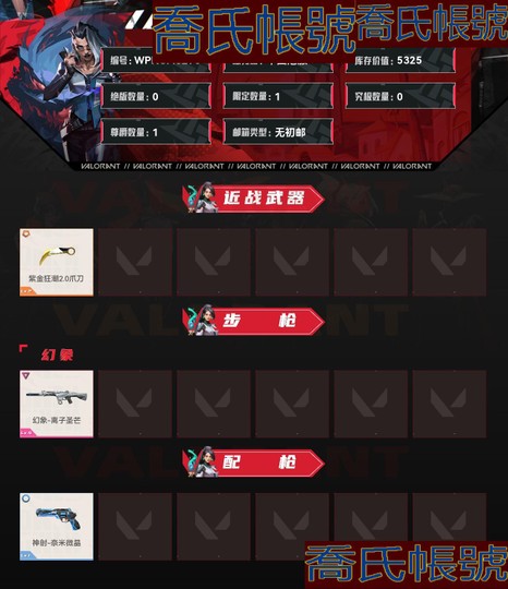 無段位,刀皮數量1,槍皮數量2(絕版0,限定1,究極0,尊爵1);庫存價值:5