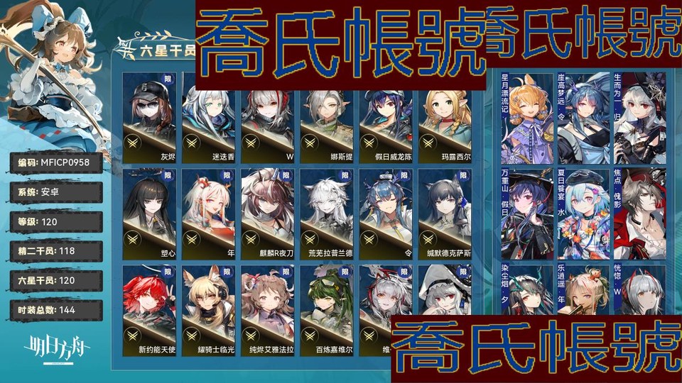 【OBMFICP095842】120級,120六星,118精二,1精一,合成玉數量:80015,源石數量:720,聯動幹員數量:20,時裝數量:144,精二六星:多蘿西,靈知,灰燼,酒神,迷迭香,滌火傑西卡,鴻雪,伊內絲,信仰攪拌機,焰影葦草,隱德來希,W,流明,瑕光,銀灰,提豐,黑鍵,早露,傀影,推進之王,安潔莉娜,空弦,電弧,止頌,伺夜,仇白,妮芙,風笛,萊伊,凱爾希,死芒,娜斯提,阿,薇薇安娜,赫拉格,鈴蘭,異客,假日威龍陳,瑪露西爾,淬羽赫默,聖約送葬人,塑心,溫蒂,霍爾海雅,白鐵,年,忍冬,閃靈,能天使,維娜·維多利亞,艾雅法拉,麥哲倫,真言,麒麟R夜刀,燭煌,黑,陳,魔王,嵯峨,泥岩,聖聆初雪,荒蕪拉普蘭德,歌蕾蒂婭,琴柳,令,蕾繆安,林,Mon3tr,邏各斯,緘默德克薩斯,斥罪,伊芙利特,水月,琳琅詩懷雅,引星棘刺,新約能天使,弒君者,耀騎士臨光,棘刺,夜鶯,純燼艾雅法拉,森蚺,菲亞梅塔,百鍊嘉維爾,維什戴爾,山,歸溟幽靈鯊,繆爾賽思,澄閃,星熊,娜仁圖亞,遙,烏爾比安,老鯉,塞雷婭,莫斯提馬,阿斯卡綸,刻俄柏,鐧,煌,濁心斯卡蒂,黍,瑪恩納,豐川祥子,艾拉,斯卡蒂,赫德雷,號角,左樂,斬業星熊,史爾特爾,凜御銀灰,佩佩,司霆驚蟄,重嶽,餘,焰尾,帕拉斯;精一六星:卡涅利安;六星幹員:多蘿西,靈知,灰燼,酒神,迷迭香,滌火傑西卡,鴻雪,伊內絲,信仰攪拌機,焰影葦草,隱德來希,W,流明,瑕光,銀灰,提豐,黑鍵,早露,傀影,推進之王,安潔莉娜,空弦,電弧,止頌,伺夜,仇白,妮芙,風笛,萊伊,凱爾希,死芒,娜斯提,阿,薇薇安娜,赫拉格,鈴蘭,異客,假日威龍陳,瑪露西爾,淬羽赫默,聖約送葬人,塑心,溫蒂,霍爾海雅,白鐵,年,忍冬,閃靈,能天使,維娜·維多利亞,艾雅法拉,麥哲倫,真言,麒麟R夜刀,燭煌,黑,陳,魔王,嵯峨,泥岩,聖聆初雪,荒蕪拉普蘭德,歌蕾蒂婭,琴柳,令,蕾繆安,林,Mon3tr,邏各斯,緘默德克薩斯,斥罪,伊芙利特,水月,琳琅詩懷雅,引星棘刺,新約能天使,弒君者,耀騎士臨光,棘刺,夜鶯,純燼艾雅法拉,森蚺,菲亞梅塔,百鍊嘉維爾,維什戴爾,山,歸溟幽靈鯊,繆爾賽思,澄閃,星熊,娜仁圖亞,遙,烏爾比安,老鯉,塞雷婭,莫斯提馬,阿斯卡綸,刻俄柏,鐧,煌,濁心斯卡蒂,黍,瑪恩納,豐川祥子,艾拉,斯卡蒂,赫德雷,號角,左樂,斬業星熊,史爾特爾,凜御銀灰,佩佩,司霆驚蟄,重嶽,餘,焰尾,帕拉斯,卡涅利安,溯光星源;聯動幹員:灰燼,瑪露西爾,八幡海鈴,若葉睦,三角初華,豐川祥子,艾拉,閃擊,醫生,祐天寺若麥,森西,戰車,導火索,齊爾查克,萊歐斯,九色鹿,泰拉大陸調查團,雙月,羅小黑,霜華;時裝:星月漂流記·克洛絲,崖高夢遠·令,生而為一·歸溟幽靈鯊,萬重山·假日威龍陳,夏日餮宴·水月,焦點·傀影,染塵煙·夕,樂逍遙·年,恍惚·W,悠然假日HD71·寒檀,一人車隊·賈維,旋律的主人·豐川祥子,火種·火神,糖果暴擊·奧達,玩伴·紅雲,家傳秘方·暴行,拭刀·刻刀,最初的頌歌·PhonoR-0,封面傭兵·石英,玫瑰騎手·維荻,斜照·折光,礫瓦·泥岩,相位面容·錫人,雙料四分衛·THRM-EX,隨意而行·蘇蘇洛,悠然假日HD61·蜜蠟,地底三百米·暴行,從容時刻·翎羽,賀新禧·清流,晚間咖啡店·安賽爾,主修領域·地靈,單刀·炎客,星櫞林·流星,悠然假日HD49·錫蘭,晴日·卡緹,北地引路人·提豐,觸及星辰·阿米婭,競技之夢改裝·正義騎士號,悠然假日HDm57·褐果,悠然假日HD29·安比爾,奇工妙想·星極,躍上街頭·泰拉大陸調查團,枝頭馥·夜半,衣縷往昔·梓蘭,火樹靈·布丁,繪聲繪影·深海色,風雪邀請·史都華德,遙鄉之徑·夏櫟,喜夜侍者·澄閃,夏卉FA374·羅比菈塔,無痕行者·安德切爾,組間休息·布洛卡,偽裝·宴,春之頌·鈴蘭,超級斷罪朋友·斷罪者,幽谷奏鳴·石棉,破冰·霜葉,未完成的禮物·豆苗,縱身一躍·傑克,妙手玄心·阿,悠然假日HD31·華法琳,海岸救援改裝·Lancet-2,待晴日·深靛,黑曜石·泥岩,詩人的假日·流星,傑作·早露,魔城迴響·巫戀,天命勇者·雪雉,安息處的怪盜·卡達,宣傳策略·空弦,夏卉FA026·蘇蘇洛,淺灘律動·藍毒,淡金慶典·桃金娘,靜謐午夜DN06·泥岩,夏卉FA018·艾雅法拉,爆裂菲林·煌,荒原行者·普羅旺斯,專業人士·斑點,霜息·赫默,除魅·莫斯提馬,古堡清潔專家·阿消,糖果仙子·溫蒂,尋耀·星極,八音蛋匠人·格雷伊,滲透·伊桑,皇后一號·風笛,探尋者SKm01·銀灰,夏卉FA333·刻俄柏,幽靜·白麵鴞,夏卉FA661·宴,遺石·推進之王,無畏·米格魯,高原訪客·崖心,見習聯結者·阿米婭,書味·真理,燦陽朝露SD01·臨光,光影·夜魔,夏卉FA008·暗索,馭浪WR04·斯卡蒂,堅城·塞雷婭,狩標浪人·星熊,無形悼挽·獅蠍,質素訪客·安潔莉娜,回味冰霜雪·麥哲倫,城市騎手·能天使,典雅噩兆·拉普蘭德,歲紅霞·陳,兒童派對·伊芙利特,清晨七點·可頌,富貴榮華·詩懷雅,輓歌·夜鶯,厚禮·黑,君子蘭·傑西卡,未知的旅行·遠山,威塞克斯的信件·玫蘭莎,約克的寒風·銀灰,報童·阿米婭,守歲人·芙蓉,盛宴·華法琳,SUM019.ver·Castle-3,魔術師·克洛絲,開斯特之霜·初雪,快樂衛士·卡緹,小鬼當家·暗索,靜謐午夜DN02·閃靈,鐵塊·傑西卡,悠然假日HDm06·安賽爾,植物種志·調香師,辛味·末藥,十字郡·芬,寒冬信使·德克薩斯;【官方賬號】kfc聯動齊