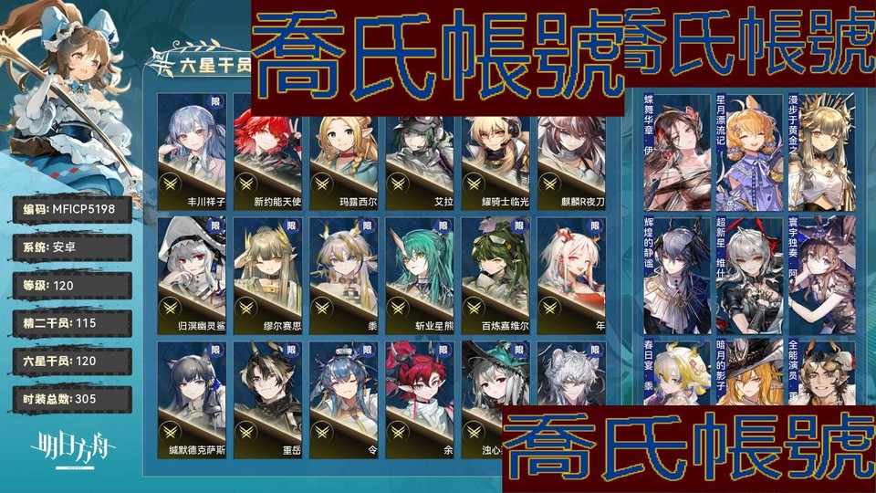 【OBMFICP519842】120級,120六星,115精二,1精一,合成玉數量:149106,源石數量:34,聯動幹員數量:20,時裝數量:305,精二六星:多蘿西,星熊,艾麗妮,豐川祥子,新約能天使,棘刺,瑪露西爾,溫蒂,淬羽赫默,白鐵,赫拉格,忍冬,艾拉,耀騎士臨光,陳,麒麟R夜刀,阿,焰尾,煌,瑕光,老鯉,斥罪,烏爾比安,赫德雷,歸溟幽靈鯊,繆爾賽思,號角,帕拉斯,隱德來希,黍,琳琅詩懷雅,琴柳,聖約送葬人,斬業星熊,靈知,歌蕾蒂婭,百鍊嘉維爾,瑪恩納,伺夜,年,傀影,鐧,霍爾海雅,伊芙利特,水月,緘默德克薩斯,重嶽,流明,滌火傑西卡,魔王,嵯峨,異客,電弧,維娜·維多利亞,令,伊內絲,林,推進之王,塞雷婭,引星棘刺,閃靈,早露,風笛,遙,森蚺,鈴蘭,餘,濁心斯卡蒂,黑鍵,菲亞梅塔,夜鶯,凜御銀灰,刻俄柏,聖聆初雪,黑,酒神,莫斯提馬,妮芙,安潔莉娜,燭煌,司霆驚蟄,死芒,Mon3tr,焰影葦草,塑心,左樂,佩佩,夕,麥哲倫,銀灰,卡涅利安,邏各斯,澄閃,灰燼,泥岩,史爾特爾,山,艾雅法拉,凱爾希,真言,鴻雪,空弦,遠牙,荒蕪拉普蘭德,斯卡蒂,W,迷迭香,提豐,假日威龍陳,娜仁圖亞,維什戴爾,能天使,純燼艾雅法拉,蕾繆安,仇白;精一六星:薇薇安娜;六星幹員:多蘿西,星熊,艾麗妮,豐川祥子,新約能天使,棘刺,瑪露西爾,溫蒂,淬羽赫默,白鐵,赫拉格,忍冬,艾拉,耀騎士臨光,陳,麒麟R夜刀,阿,焰尾,煌,瑕光,老鯉,斥罪,烏爾比安,赫德雷,歸溟幽靈鯊,繆爾賽思,號角,帕拉斯,隱德來希,黍,琳琅詩懷雅,琴柳,聖約送葬人,斬業星熊,靈知,歌蕾蒂婭,百鍊嘉維爾,瑪恩納,伺夜,年,傀影,鐧,霍爾海雅,伊芙利特,水月,緘默德克薩斯,重嶽,流明,滌火傑西卡,魔王,嵯峨,異客,電弧,維娜·維多利亞,令,伊內絲,林,推進之王,塞雷婭,引星棘刺,閃靈,早露,風笛,遙,森蚺,鈴蘭,餘,濁心斯卡蒂,黑鍵,菲亞梅塔,夜鶯,凜御銀灰,刻俄柏,聖聆初雪,黑,酒神,莫斯提馬,妮芙,安潔莉娜,燭煌,司霆驚蟄,死芒,Mon3tr,焰影葦草,塑心,左樂,佩佩,夕,麥哲倫,銀灰,卡涅利安,邏各斯,澄閃,灰燼,泥岩,史爾特爾,山,艾雅法拉,凱爾希,真言,鴻雪,空弦,遠牙,荒蕪拉普蘭德,斯卡蒂,W,迷迭香,提豐,假日威龍陳,娜仁圖亞,維什戴爾,能天使,純燼艾雅法拉,蕾繆安,仇白,薇薇安娜,弒君者,信仰攪拌機,溯光星源,止頌;聯動幹員:豐川祥子,祐天寺若麥,瑪露西爾,艾拉,醫生,灰燼,八幡海鈴,閃擊,戰車,三角初華,萊歐斯,若葉睦,導火索,九色鹿,森西,霜華,齊爾查克,泰拉大陸調查團,雙月,羅小黑;時裝:蝶舞華章·伊內絲,星月漂流記·克洛絲,漫步於黃金之夢·繆爾賽思,輝煌的靜謐·邏各斯,超新星·維什戴爾,寰宇獨奏·阿米婭,春日宴·黍,暗月的影子·鐧,全能演員·重嶽,遠行前的野餐·純燼艾雅法拉,流輝·夜鶯,無我唯識·塑心,眾志歸一·聖約送葬人,幽蘭秘辛·緘默德克薩斯,燃燒天穹下·伊內絲,不融冰·銀灰,紅女爵·濁心斯卡蒂,破翼者·緘默德克薩斯,何處棲·重嶽,列瑤臺·林,遠路·瑪恩納,悠然假日HD26·百鍊嘉維爾,崖高夢遠·令,夏卉FA394·澄閃,殘餘·凱爾希,生而為一·歸溟幽靈鯊,萬重山·假日威龍陳,濯纓·令,夏日餮宴·水月,字句中的雪原·鴻雪,手到牌來·老鯉,今昔須臾之夢·異客,復現榮光·耀騎士臨光,繽紛奇境CW03·史爾特爾,擁抱新生·迷迭香,焦點·傀影,昇華·濁心斯卡蒂,染塵煙·夕,樂逍遙·年,恍惚·W,悠然假日HD71·寒檀,旋律的主人·豐川祥子,月下執行者·八幡海鈴,籠中歌者·三角初華,一人車隊·賈維,綿絨小魔女·艾雅法拉,夏卉FA361·空,情熱魔術師·祐天寺若麥,蒸汽尋蹤者·聖約送葬人,提線的本我·若葉睦,火種·火神,糖果暴擊·奧達,空心王冠·白鐵,萬頃陽光·萬頃,家傳秘方·暴行,玩伴·紅雲,甜美配方·妮芙,蒼茫怒號·瑪恩納,最初的頌歌·PhonoR-0,拭刀·刻刀,斜照·折光,封面傭兵·石英,玫瑰騎手·維荻,萬物有靈·懾砂,礫瓦·泥岩,相位面容·錫人,易爆藍焰·煌,夜空星芒·深律,雙料四分衛·THRM-EX,悠然假日HD61·蜜蠟,泰拉冒險·瑪露西爾,地底三百米·暴行,隨意而行·蘇蘇洛,從容時刻·翎羽,花房茶話會·澄閃,雲上直播間·U-Official,鋒潮·棘刺,密室·艾拉,展覽·醫生,鏡廊·雙月,賀新禧·清流,單刀·炎客,敘拉古的彼面·伺夜,主修領域·地靈,碎片之間·謎圖,晚間咖啡店·安賽爾,晴日·卡緹,星櫞林·流星,悠然假日HDm74·至簡,悠然假日HD49·錫蘭,北地引路人·提豐,命運主宰·多蘿西,至聖誓言·菲亞梅塔,幽邃隱修·絮雨,霜林醉·仇白,夏卉FA317·琴柳,夏卉FA062·桃金娘,悠然假日HDm57·褐果,觸及星辰·阿米婭,沙灘護衛GT003·白鐵,下一頓午茶·斯卡蒂,奇工妙想·星極,悠然假日HD29·安比爾,化花·號角,捉風·遠牙,山川的釀造·帕拉斯,衣縷往昔·梓蘭,雪霽·鈴蘭,枝頭馥·夜半,變奏·黑鍵,燦海浮夢·流明,躍上街頭·泰拉大陸調查團,火樹靈·布丁,燈如晝·曉歌,繪聲繪影·深海色,照冰輪·桑葚,遙鄉之徑·夏櫟,喜夜侍者·澄閃,營地炊煙·慕斯,風雪邀請·史都華德,組間休息·布洛卡,春之頌·鈴蘭,偽裝·宴,心性·赤冬,夏卉FA374·羅比菈塔,無痕行者·安德切爾,擁抱新生·迷迭香曾經,夏卉FA210·羽毛筆,荒野之後·蜜莓,返航·歌蕾蒂婭,小健將·焰尾,悠然假日HDm04·炎客,夏卉FA641·夜半,如歌·空,開牌制勝·龍舌蘭,超級斷罪朋友·斷罪者,摧城·推進之王,幽谷奏鳴·石棉,識芳·琴柳,破冰·霜葉,先驅·靈知,植藥·桑葚,未完成的禮物·豆苗,海岸救援改裝·Lancet-2,黑曜石·泥岩,霍恩洛厄的寒沙·卡涅利安,冷山月·烏有,無拘無束·刻俄柏,希望巡遊·萊恩哈特,詩人的假日·流星,紙板