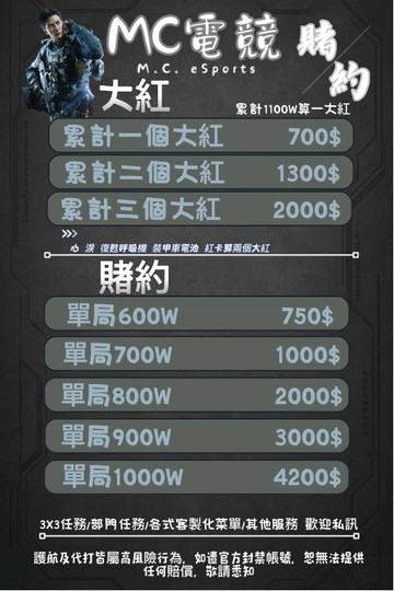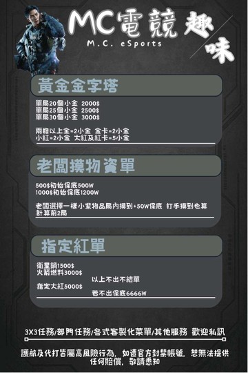 MC電競 護航陪玩娛樂單賭約單保底單跑刀3x3代做