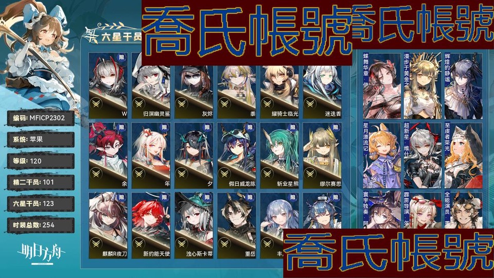【OBMFICP230242】120級,123六星,101精二,2精一,合成玉數量:92554,源石數量:40,聯動幹員數量:20,時裝數量:254,精二六星:遙,泥岩,萊伊,妮芙,史爾特爾,刻俄柏,斥罪,W,黑,歸溟幽靈鯊,歌蕾蒂婭,灰燼,娜仁圖亞,黍,鐧,烏爾比安,耀騎士臨光,銀灰,溫蒂,靈知,黑鍵,安潔莉娜,星熊,塞雷婭,帕拉斯,瑪恩納,迷迭香,餘,年,仇白,夕,假日威龍陳,流明,號角,棘刺,早露,維娜·維多利亞,斬業星熊,聖聆初雪,聖約送葬人,蕾繆安,隱德來希,空弦,山,莫斯提馬,伊芙利特,傀影,死芒,菲亞梅塔,鴻雪,瑕光,森蚺,司霆驚蟄,繆爾賽思,麒麟R夜刀,阿,陳,焰尾,新約能天使,凱爾希,酒神,魔王,閃靈,琴柳,濁心斯卡蒂,滌火傑西卡,重嶽,鈴蘭,林,水月,多蘿西,豐川祥子,令,引星棘刺,燭煌,Mon3tr,電弧,推進之王,斯卡蒂,塑心,薇薇安娜,艾拉,荒蕪拉普蘭德,艾麗妮,艾雅法拉,煌,緘默德克薩斯,百鍊嘉維爾,老鯉,夜鶯,提豐,阿斯卡綸,焰影葦草,風笛,邏各斯,伊內絲,純燼艾雅法拉,異客,能天使,澄閃,維什戴爾;精一六星:琳琅詩懷雅,嵯峨;六星幹員:遙,泥岩,萊伊,妮芙,史爾特爾,刻俄柏,斥罪,W,黑,歸溟幽靈鯊,歌蕾蒂婭,灰燼,娜仁圖亞,黍,鐧,烏爾比安,耀騎士臨光,銀灰,溫蒂,靈知,黑鍵,安潔莉娜,星熊,塞雷婭,帕拉斯,瑪恩納,迷迭香,餘,年,仇白,夕,假日威龍陳,流明,號角,棘刺,早露,維娜·維多利亞,斬業星熊,聖聆初雪,聖約送葬人,蕾繆安,隱德來希,空弦,山,莫斯提馬,伊芙利特,傀影,死芒,菲亞梅塔,鴻雪,瑕光,森蚺,司霆驚蟄,繆爾賽思,麒麟R夜刀,阿,陳,焰尾,新約能天使,凱爾希,酒神,魔王,閃靈,琴柳,濁心斯卡蒂,滌火傑西卡,重嶽,鈴蘭,林,水月,多蘿西,豐川祥子,令,引星棘刺,燭煌,Mon3tr,電弧,推進之王,斯卡蒂,塑心,薇薇安娜,艾拉,荒蕪拉普蘭德,艾麗妮,艾雅法拉,煌,緘默德克薩斯,百鍊嘉維爾,老鯉,夜鶯,提豐,阿斯卡綸,焰影葦草,風笛,邏各斯,伊內絲,純燼艾雅法拉,異客,能天使,澄閃,維什戴爾,琳琅詩懷雅,嵯峨,麥哲倫,赫德雷,信仰攪拌機,弒君者,伺夜,佩佩,卡涅利安,溯光星源,赫拉格,真言,淬羽赫默,凜御銀灰,止頌,白鐵,瑪露西爾,霍爾海雅,遠牙,左樂,娜斯提,忍冬;聯動幹員:灰燼,瑪露西爾,齊爾查克,豐川祥子,艾拉,導火索,祐天寺若麥,戰車,醫生,若葉睦,萊歐斯,閃擊,森西,八幡海鈴,九色鹿,泰拉大陸調查團,三角初華,霜華,羅小黑,雙月;時裝:蝶舞華章·伊內絲,漫步於黃金之夢·繆爾賽思,輝煌的靜謐·邏各斯,星月漂流記·克洛絲,超新星·維什戴爾,至虔者榮光·空弦,寰宇獨奏·阿米婭,霹靂導演·年,全能演員·重嶽,春日宴·黍,無我唯識·塑心,暗月的影子·鐧,眾志歸一·聖約送葬人,幽蘭秘辛·緘默德克薩斯,不融冰·銀灰,遠行前的野餐·純燼艾雅法拉,流輝·夜鶯,新枝·繆爾賽思,燃燒天穹下·伊內絲,紅女爵·濁心斯卡蒂,破翼者·緘默德克薩斯,何處棲·重嶽,博物·焰影葦草,列瑤臺·林,遠路·瑪恩納,悠然假日HD26·百鍊嘉維爾,崖高夢遠·令,夏卉FA394·澄閃,殘餘·凱爾希,生而為一·歸溟幽靈鯊,萬重山·假日威龍陳,濯纓·令,字句中的雪原·鴻雪,夏日餮宴·水月,手到牌來·老鯉,今昔須臾之夢·異客,復現榮光·耀騎士臨光,繽紛奇境CW03·史爾特爾,擁抱新生·迷迭香,焦點·傀影,昇華·濁心斯卡蒂,染塵煙·夕,樂逍遙·年,恍惚·W,綿絨小魔女·艾雅法拉,悠然假日HD71·寒檀,蒸汽尋蹤者·聖約送葬人,雨霓行遊客·流明,悠然假日HD29·安比爾,火種·火神,夏卉FA361·空,糖果暴擊·奧達,玩伴·紅雲,家傳秘方·暴行,拭刀·刻刀,蒼茫怒號·瑪恩納,最初的頌歌·PhonoR-0,封面傭兵·石英,夢幻高空·萊伊,繁霜滿階·纏丸,礫瓦·泥岩,玫瑰騎手·維荻,斜照·折光,相位面容·錫人,遺蹟遊學者·驚蟄,新手光環·寒芒克洛絲,泰拉冒險·瑪露西爾,隨意而行·蘇蘇洛,花房茶話會·澄閃,悠然假日HD61·蜜蠟,雲上直播間·U-Official,地底三百米·暴行,我即潮汐·歌蕾蒂婭,雙料四分衛·THRM-EX,從容時刻·翎羽,賀新禧·清流,密室·艾拉,伴青蓮·截雲,展覽·醫生,鋒潮·棘刺,鏡廊·雙月,單刀·炎客,晚間咖啡店·安賽爾,主修領域·地靈,偶爾醉陶·斥罪,星櫞林·流星,舞·月禾,古往今來的月·九色鹿,命運主宰·多蘿西,皇家近衛·風笛,晴日·卡緹,至聖誓言·菲亞梅塔,北地引路人·提豐,悠然假日HD49·錫蘭,觸及星辰·阿米婭,夏卉FA317·琴柳,霜林醉·仇白,林虹之間·芙蘭卡,競技之夢改裝·正義騎士號,悠然假日HDm57·褐果,彼有·嵯峨,捉風·遠牙,化花·號角,山川的釀造·帕拉斯,書信零落·海蒂,奇工妙想·星極,枝頭馥·夜半,邀約·和絃,廊下游·寒芒克洛絲,雪霽·鈴蘭,火樹靈·布丁,繪聲繪影·深海色,燈如晝·曉歌,靈巧侍者·耶拉,躍上街頭·泰拉大陸調查團,喜夜侍者·澄閃,風雪邀請·史都華德,未講述的故事·埃拉託,遙鄉之徑·夏櫟,組間休息·布洛卡,幻影輕悄·風丸,夏卉FA374·羅比菈塔,偽裝·宴,無痕行者·安德切爾,心性·赤冬,春之頌·鈴蘭,擁抱新生·迷迭香曾經,燦陽朝露SD08·卡涅利安,荒野之後·蜜莓,夏卉FA210·羽毛筆,歡唱之前·洛洛,小健將·焰尾,夏卉FA641·夜半,如歌·空,幽谷奏鳴·石棉,摧城·推進之王,超級斷罪朋友·斷罪者,識芳·琴柳,翡翠假日·葦草,植藥·桑葚,海岸救援改裝·Lancet-2,未完成的禮物·豆苗,破冰·霜葉,黑曜石·泥岩,妙手玄心·阿,暮影藤蘿·炎獄炎熔,無拘無束·刻俄柏,悠然假日HD31·華法琳,縱身一躍·傑克,傑作·早露,異月災裔·瑕光,待晴日·深靛,淡金慶典·桃金娘,霍恩洛厄的寒沙·卡涅利安,詩人的假日·流星,淺