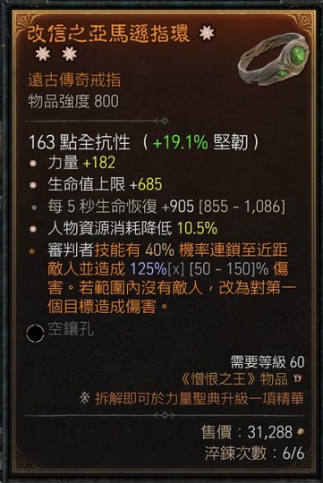 S11 3太古戒指 力量/生命上限/人物資源消耗降低