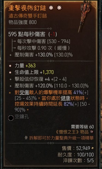 S11 雙太古 雙手釘鎚 力量/生命上限