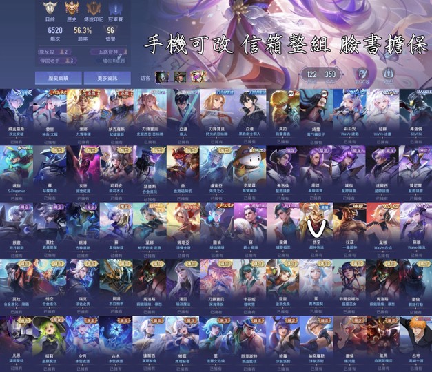【Garena帳有綁定、鉑金、V10、122英、350造】V10次元 文鰩 九霄 弒槍 亞絲娜 桐人 善意 彌豆子 女團 冰鑽 惡魔 滅世