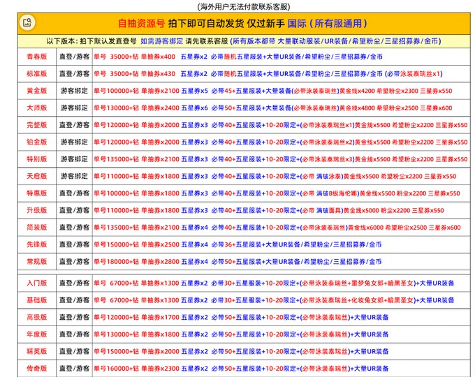 下單前先看清楚安卓或者是IOS 區服 買後不退
