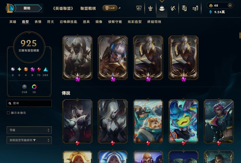 【401等、未定級、999英雄、925造型】英雄聯盟925造型含許多絕版/特戰英豪16刀多槍造型 同帳號出售 資料皆可改