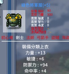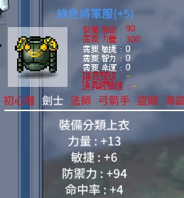 【綠色將軍服】90等上衣 23屬 13力 6敏 4命中