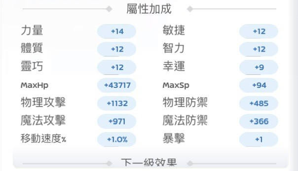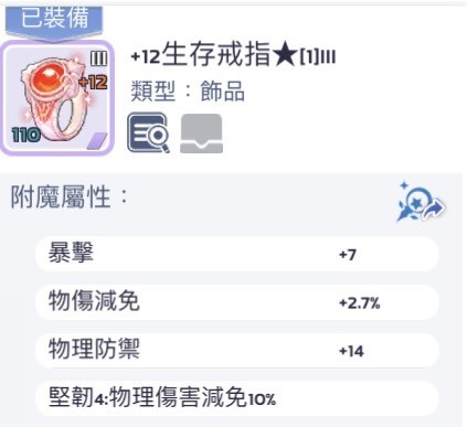 小條屬性大部分都洗到物傷減免、還有全洗滿的~