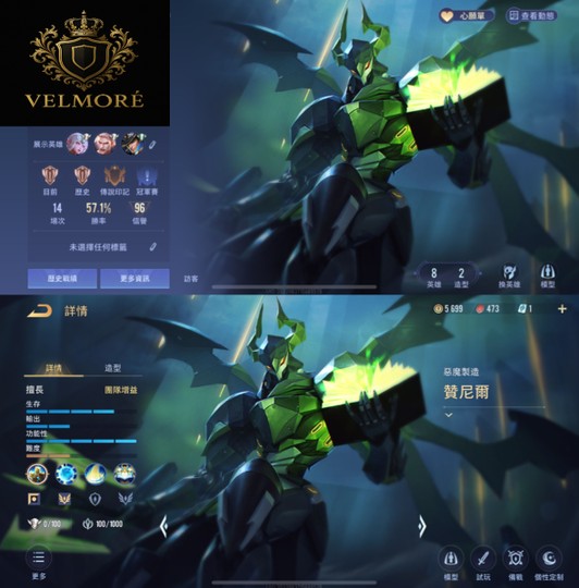 【Garena帳無綁無連、青銅、V2、8英、2造】無綁無連 贊尼爾惡魔製造簡 有英雄