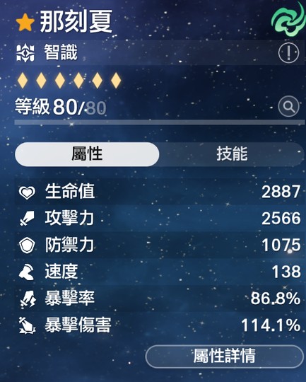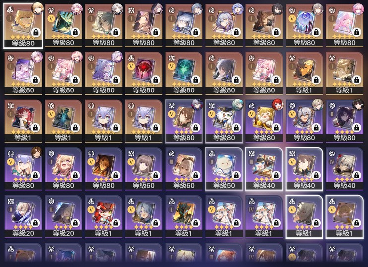 主要戰力角色面板都小畢業