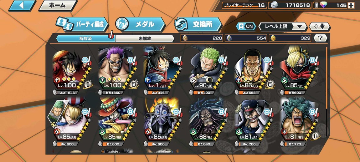 【15等】Z老師100等,黃猿86等,黑鬍子80等,日服號