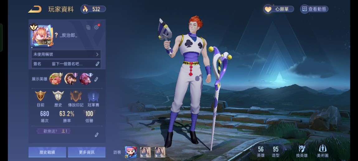 【Garena帳無綁無連、黃金、V4、56英、95造】[G帳無綁無連,黃金,V4,56英,95型]多限多角可改名