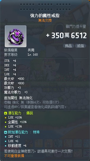 【強力的魔性戒指含剪】1-33幸含10全大魔/33%LUK