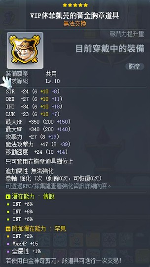 【VIP休菲凱曼的黃金胸章道具】頂%智 附加罕見3% 白5 均5.5攻