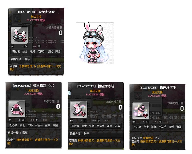 粉兔安全帽+粉貓安全帽+奶油粉紅+應援手燈+粉色冰淇淋+粉色溜冰鞋+名牌戒指+聊天戒指+臉飾