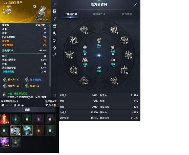 面板狀態是沒有吃任何卷軸跟料理 沒加水 戰鬥速度吃白捲多10% 48.3%